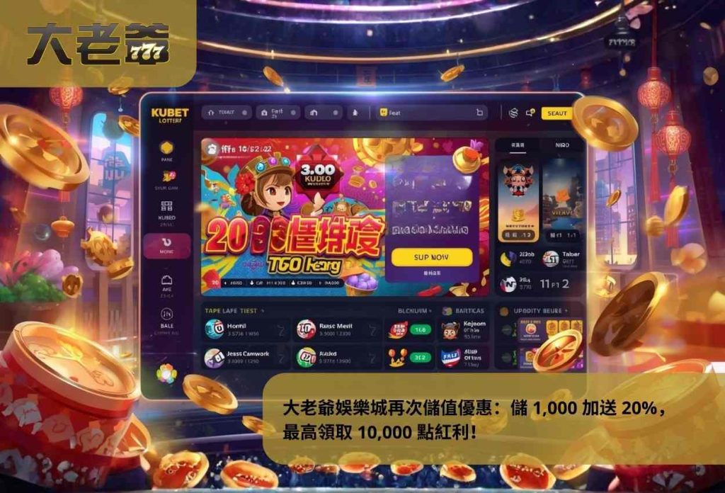 大老爺娛樂城再次儲值優惠:儲 1,000 加送 20%,最高領取 10,000 點紅利!